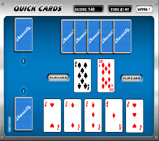 Try and get rid of all your cards before the computer does by placing your cards on one of the two middle piles. The value of the card must be one greater or one less than the card you drop it on. If no drops are left then click on the “flip cards” button to swap the cards around. The faster you play, the more points you’ll get! |