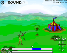 This is a great game. With a bow and arrow, you will try to shoot as far as possible. You need to make sure that the wind is blowing your way and that you have the right angle to make it go as far as possible. Each level will increase the distance you need to pass. |